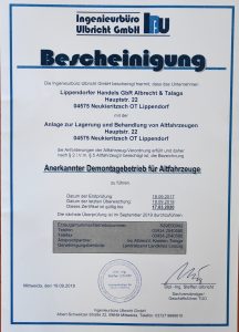 Annerkannter Demontagebetrieb für Altfahrzeuge.